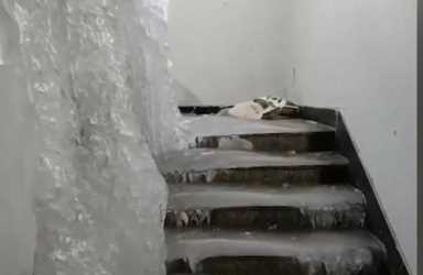 同样的事情也发生在河北廊坊,1月9日,一小区楼梯扶手大面积结冰,宛如“冰帘洞”。据了解,该小区因拆迁没人住,所以水管冻坏了。