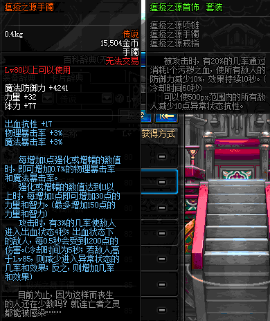3、野猪手镯。原因:拍卖行80级传说手镯普遍2000W以上,太贵不如自己做。