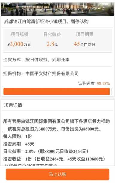是不是有种似曾相识的感觉啊,没错,这就是典型的p2p平台。七八年钱就已经盛行火爆的了,各种各样的都有,现在换了个马甲,把酒店包装成理财产品了。