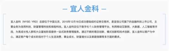 2019年,宜信旗下的宜人贷网贷平台被整合纳入宜人金科(YRD.NY),成为宜人金科一项子业务。然而,在去年年底,宜人金科与母公司宜信签订业务重组最终协议,将公司定位更改为综合性个人金融服务平台,停止宜人贷经营业务。