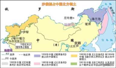 俄罗斯帝国与清朝先后签订中俄《瑷珲条约》《北京条约》《勘分西北界约记》《改订条约》等不平等条约,从清朝东北和西北割占大片领土。