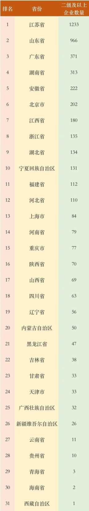 全国省级参与智能制造能力成熟度自评估且达到成熟度二级及以上的企业数量排名(2021年),如下表所示: