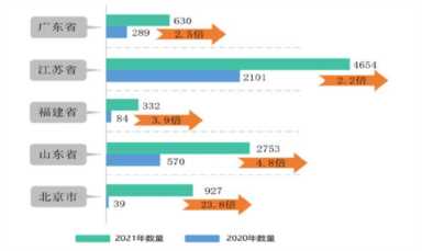 从区域参与增长率来看,2021年深圳、江苏、福建、山东以及北京市鼓励企业开展标准应用,辖区内完成智能制造能力成熟度自诊断企业数量较2020年度有显著提升,增速位居全国前列。