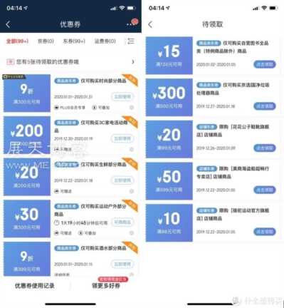 其中左图的红框是普通全品类东券,一般我们在领券中心领的都是这种;