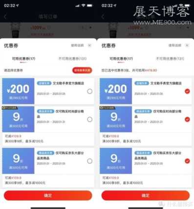 发现的答案是表标价1099元,两个都打9折的券叠加相当于打8折!而且每张折钓1折相当于减109.9元在减120元范围内,加上店铺券减200元,合计刚好减了右图的419.8元。