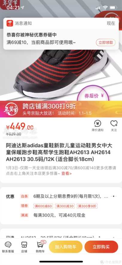 (3)三张优惠券的叠加,不只有adidas,大家猜一下优惠力度怎么算的