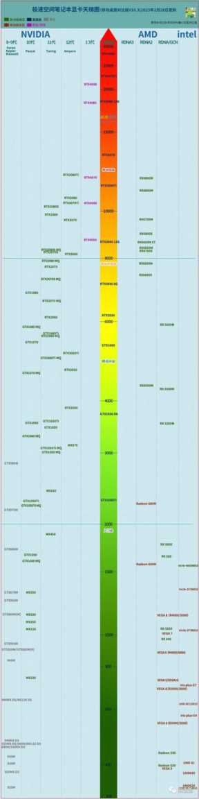 将显卡性能按高低排列,给显卡排名的一张图。上面的性能高,下面的性能低;排列起来,像**一样,最上面不封顶(科技永远进步),所以叫天梯图