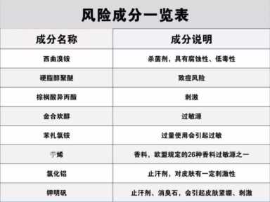 除了测评止汗露的抑汗抑味效果以外,还要关注一下止汗露的成分表,市面上常见的止汗露成分有两种风险,一种是有刺激性的功效成分,另一种是添加香精等致敏成分。