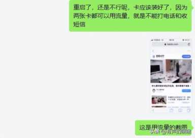 3月4日,中国电信宽带师傅为小张申请了2张副卡,副卡均安装在其苹果6的手机上,可以使用流量,但无法通话。反馈后,师傅回复是因为小张的手机系统版本过低,建议更换手机尝试。