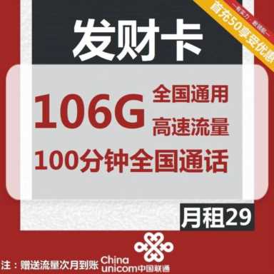 联通欢聚卡29元包100G通用流量+100分钟通话