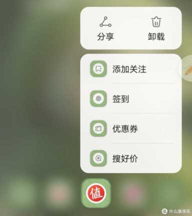 有的应用还设置了快捷菜单,只要长按应用图标,就会显示菜单,里面是最常用的几个功能。以张大妈的APP为例,就有“签到”选项,每天早上长按图标,一秒就签到,再也不会错过啦。