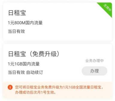 我在王卡助手,升级了1元日租宝!原来1元才800MB,现在1元有1G了。