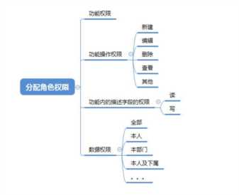 功能权限:用于设定该角色能够使用哪些产品功能,如果不属于该角色业务范畴内的功能可以直接对该用户屏蔽,避免过多的功能菜单干扰用户对产品的使用。功能操作权限:企业管理越精细,员工负责的工作越具体,一个功能内,不同的人按照其职责进行不同的操作划分,为了保证数据的正确性和安全性,需要给不同的角色分配同一功能下不同的操作权限。功能内的描述字段权限:一个业务功能中有不同的属性描述字段,但不同的角色关心的属性不一样,为了能够进行区分,需要给不同的角色去设定不同字段的读/写权限。数据权限:企业数据本质上是企业资源,既具有私密性又具有共享性。一个角色具有该功能的一定操作权限,但是他能操作该功能下哪些数据?只能操作他本人创建的数据,还是能操作其他员工创建的数据需要通过数据?这就需要用数据权限来控制。这就要求当数据被创建,该条数据也需要相应的字段来描述该条数据的所属关系,该数据属于哪个用户,属于哪个部门,最终才可实现人和数据的关联,以实现基于员工角色的权限管理。