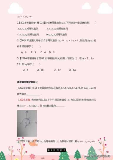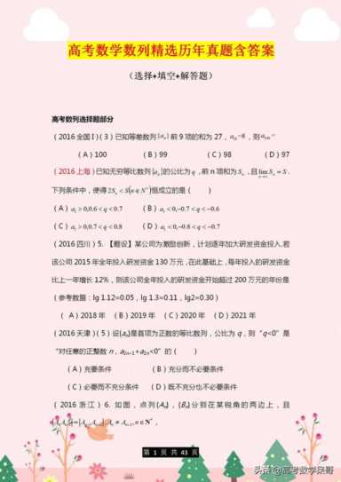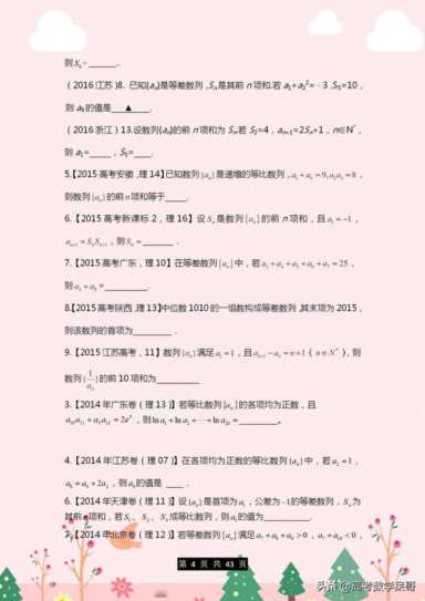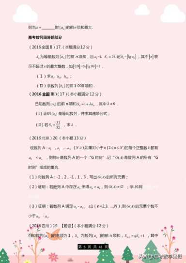 鉴于期末将至,距离高考也只有160天左右了,今天小编老师给同学们整理了一套数列高考题,选择、填空、解答题都包含,同学们打印下来练习,对于即将到来的第一次诊断考试以及之后的高考都是有一定帮助的。