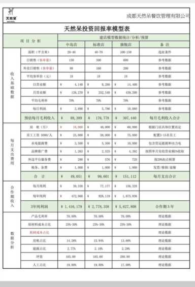记者向天然呆餐饮负责人了解到,目前位于成都地区的加盟商只需要向公司交付2万元的定金,无需交付10万元的加盟费,并且免交加盟费的名额有限。从装修、培训、前期筹备备料到落地,筹备周期仅需1个月左右。按照在全国的平均开店成本,前期+装修+设备+材料等各种费用加在一起,从项目筹备到落地是在20万左右。