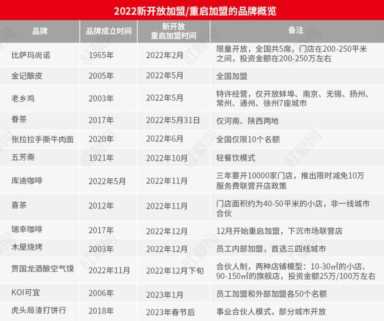 总的来看,除老乡鸡、瑞幸咖啡此前就已涉足加盟外,其余绝大部分企业都是2022年新开放的加盟。