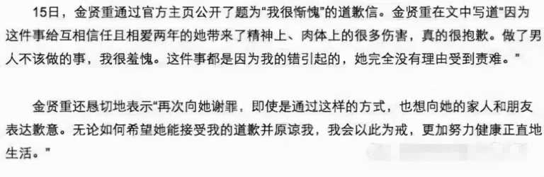 家暴事件使得金贤重饱受舆论争议,一时之间人设崩塌,口碑大跌。但是这件事后续反转又反转,跟现在王力宏和前妻的风波差不多,经历了一波又一波的起诉撤诉又反诉,中间还有复合、亲子鉴定、分手、入伍等过程。