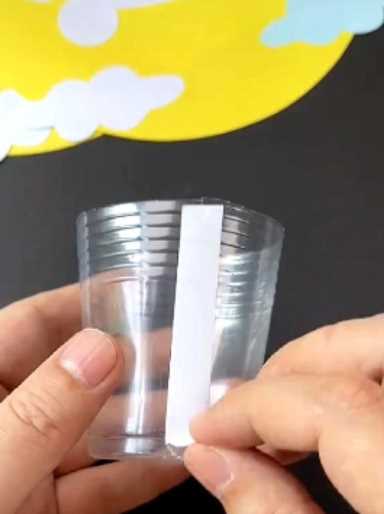 6、剪掉杯子适当部分(不超过兔子灯整体),并在杯子上粘上双面胶。