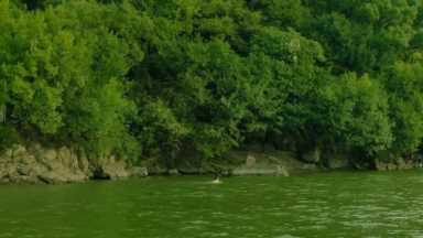 《春江水暖》的表现手法正是这种“展开山水画卷”的感觉。片中那个江老师在富春江里游泳的长镜头,就是“展开画卷式”的横移。
