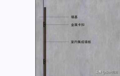 a、用金属卡扣卡在墙板凹槽里,然后在用螺丝把卡扣固定在墙面上。
