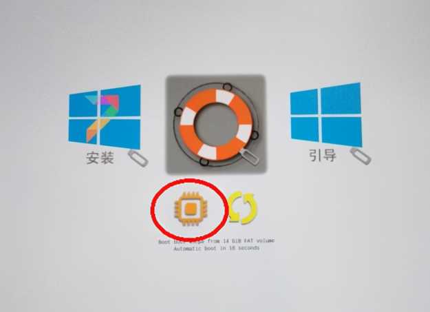 所需时间随 Win10 映像的大小不同而不同,一般在5-10分钟左右。安装完毕后,系统会自动重启,出现图1(如果无法出现图1,请执行步骤1设置 BIOS),选择最右边的“引导”,按电源键确认。