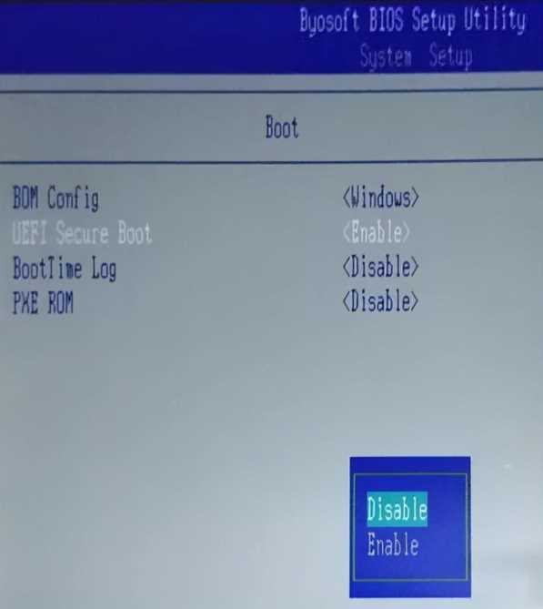把 BOM Config 设为 Windows,把 UEFI Secure Boot 设为 Disable。