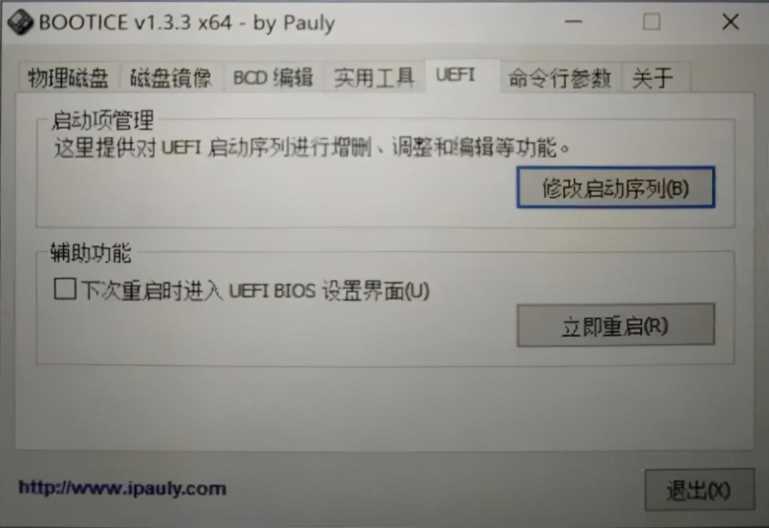 然后运行“Booticex64.exe”,选择最上面一行的“UEFI”。
