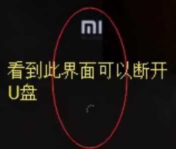 当出现带旋转“风火轮”的“MI”图标时拔掉U盘,平板将进入 Win10 系统。