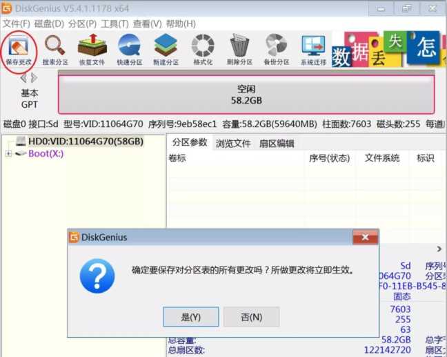 在弹出的确认提示框中点“是”,然后点左上角的“保存更改”按钮,在确认提示框中点“是”,硬盘的分区就清空了。