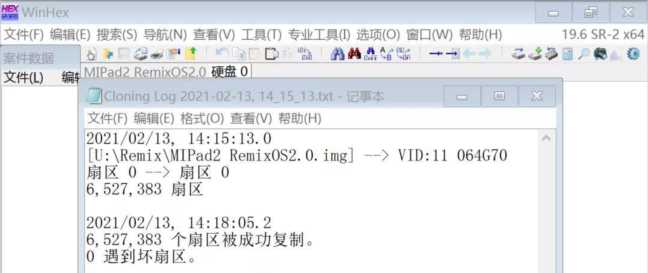 关闭报告,显示复制成功,说明已将 Remix.img 复制到平板中。