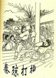 正在众人以为史大奈这次比武大赛必将会赢的时候,没想到在最后关头竟来了他的死对头秦琼,秦琼也是出名的好斗,更是在当时已经小有名气,底下的百姓们看是秦将军,个个欢呼雀跃,只看秦琼把手一抬场下的欢呼声即刻停止,说时迟那时快,双方已经展开了攻势。就在史大奈眼看敌不过秦琼之时,底下张公瑾认出秦琼,一声喊叫就把他惊下擂台,这让史大奈捡了个天大的便宜,他一下子反败为胜,事后还被北平王罗义封为旗牌官。