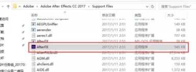 打开软件根目录C:\Program Files\Adobe\Adobe After Effects CC 2017\Support Files【C是你软件的所在盘\Adobe After Effects CC 2017是出问题的软件】