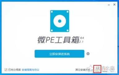 1、需要准备一个U盘,并找另一台电脑制作U盘启动工具;我们双击打开下载好的微PE工具箱软件,弹出微PE工具箱的主界面之后,我们选择其它安装方式的U盘图标,将微PE工具箱安装到你的U盘中,如下图所示。