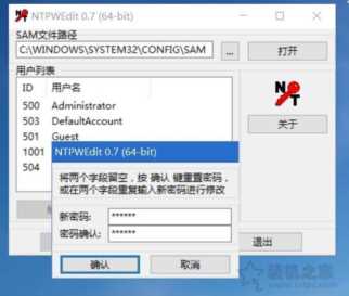 注:NTPWEdit0.7支持Windows 2000/2003,XP、Vista、Win7、Win8、Win10操作系统修改重置开机密码。