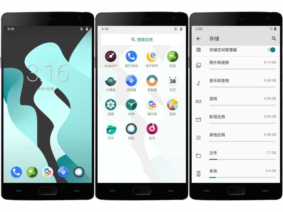 引导程序之后,进入到手机桌面,第一眼的感觉还是Lineage OS熟悉的味道,但壁纸和以往的版本都不同,熟悉的是桌面图标的样式。上滑进二级菜单时,我们可以一览其内置的全部应用,一共15个应用,相对于国内的定制系统来说,可称得上是极度精简了。而且系统也只占用了6.9GB的储存空间。而这也正是Lineage OS的特色,只是基于原生安卓进行些许修改,并不添加太多东西,给用户以最大的自我发挥空间。