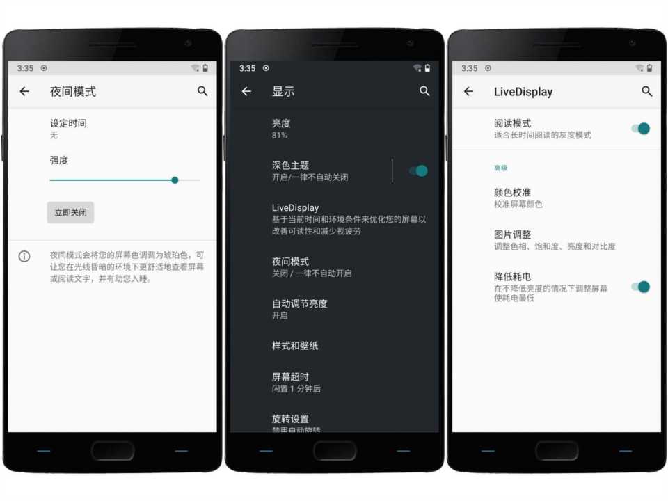 另一个让我感到惊喜的功能是三种显示模式的选择,在系统设置中,除了支持一键开启深色模式外,Lineage OS 17.1还支持夜间模式和阅读模式,夜间模式是通过将屏幕调为琥珀色实现,可在光线昏暗的环境中更舒适的查看屏幕或阅读文字。而阅读模式则是直接将屏幕色彩调为灰色,以模仿电子墨水屏的显示方式。
