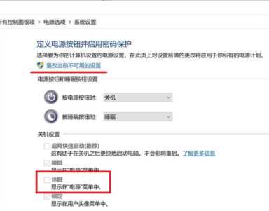 如果是周末等长时间不用时也不想关机,希望开机后就快速进入之前状态的话,还可以试一下“休眠”。它在Win10中默认不显示,需要在上图设置页面的右侧选择“其他电源设置→选择电源按键的功能”,点击页面顶部的“更改当前不可用的设置”,并且点选“休眠”前的选择框。