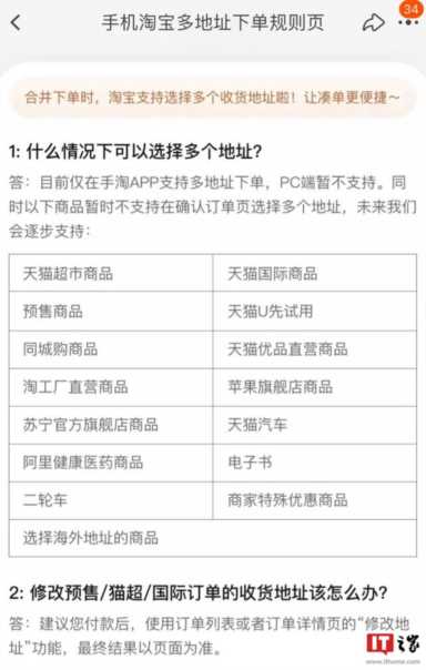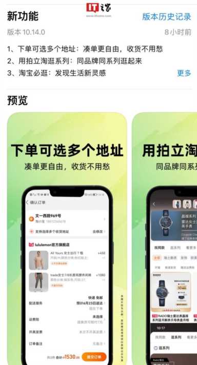 IT之家了解到,淘宝 iOS 版 10.14.0 更新包含以下内容:1、下单可选多个地址:凑单更自由,收货不用愁