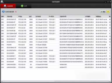 软件启动之后,每隔 1 分钟自动刷新在线设备列表,可以单击刷新进行手动刷新。所有在线设备的设备类型、激活状态、IP 地址、端口号、软件版本、IPv4 网关、HTTP 端口等信息将会显示在主界面上。