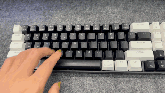 这款键盘支持全键热插拔功能,意味着我们可以随时轻松地更换按键,而无需关闭电脑或拆卸键盘。这一特性为那些喜欢个性化自己设备的用户提供了极大的便利。全键热插拔的特点使得我们可以按照自己的喜好来 DIY 键帽配色。无论是想要彰显独特个性、追求时尚潮流,还是仅仅是想让键盘看起来更加清爽、简约,都可以通过更换不同颜色和材质的键帽来实现。