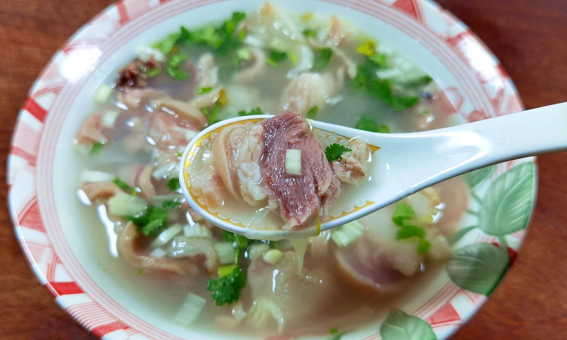 4.羊肉煮至软烂后关火,将所有调味料取出,将羊肉捞出,装入大碗中,舀入适量的羊肉汤,加入适量的盐、香醋和胡椒粉,撒上适量的香菜和葱花,加入少许辣椒油,即可食用。
