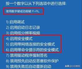4、按下F1启用安全模式,然后打开cmd命令提示符,或者按下F6启用带命令提示符的安全模式