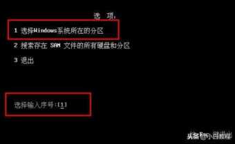 3、当按下回车键以后会出现操作系统密码清除工具,接着选择(选择Windows系统所在的分区)然后按回车键。