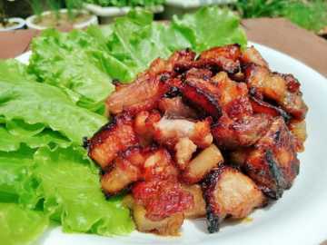 3.烤好再稍微撒些孜然粉调味,放些蒜茸口味更佳。用生菜包着吃,蘸大酱吃都行。