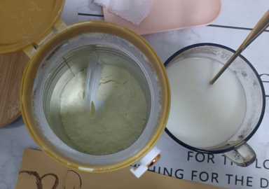 2、把驼奶粉用40度左右的温水冲泡开(这样的水温泡出的驼奶粉,更能保留它的原汁原味,奶香更加浓郁);