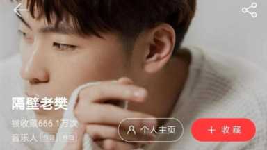 除了播放量,还有更直观的平台音乐收藏数量。隔壁老樊音乐收藏数高达600多万。