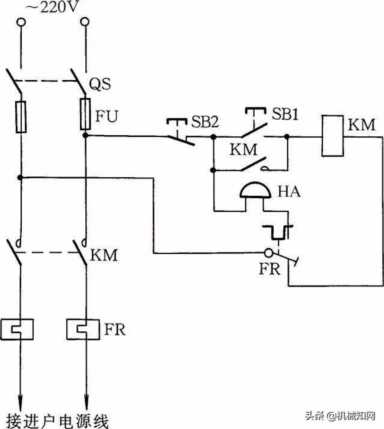 图12 缺辅助触点的交流接触器应急接线13.加密的电动机控制线路