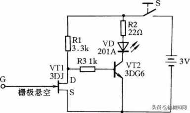 28.一种简易测量导线通断的接线方法图28所示是一感应测电笔线路。它可方便地测出导线的断芯位置。在用来测导线断芯位置时,在导线一端接上220V的电源相线,然后用感应测电笔的探头栅极靠近被测导线,并沿线移动。如果发光二极管在移动中突然熄灭,那么此处便是导线断芯位置。