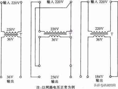 在某些地方,因网路电压长期较低或者是由于夜间用电量减少,网路电压升高,一些电器不能正常工作或损坏,利用行灯变压器升压或降压可满足需要,见图29。