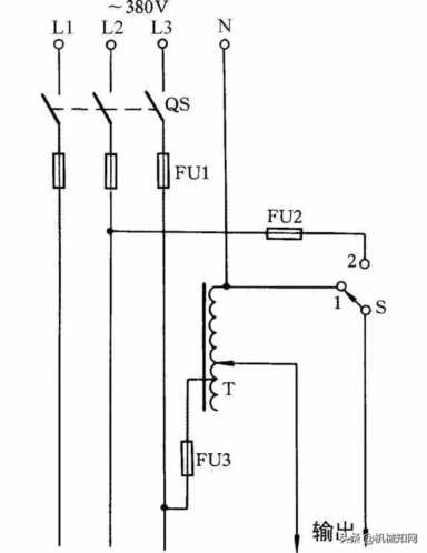 35.单相、三相自耦调压器的接线单相自耦调压器在工厂等应用极为广泛。其接线线路如图35(a)所示。
